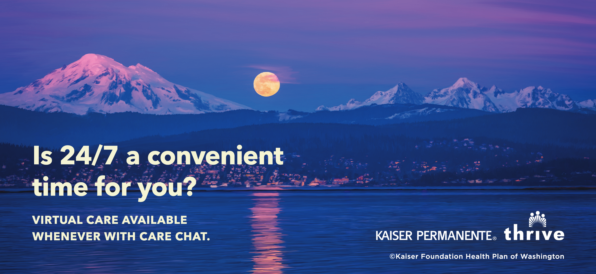 Kaiser Permanente’s Virtual Care makes getting the best healthcare in Washington state easier than ever. That’s the Evergreen State of Healthy.